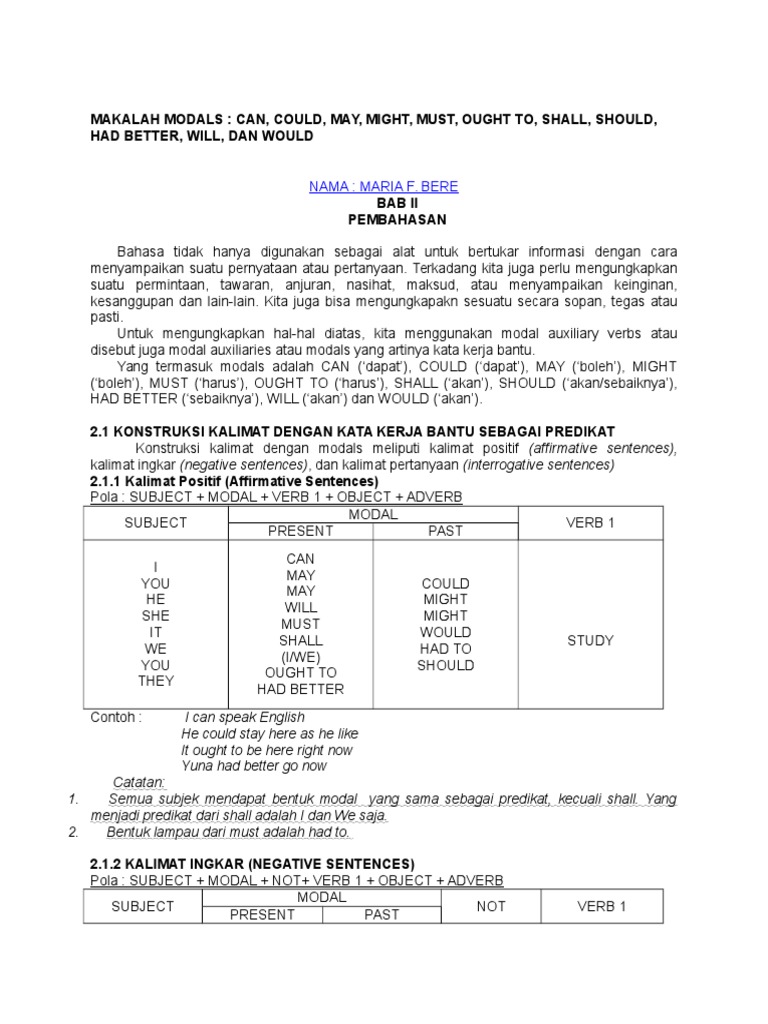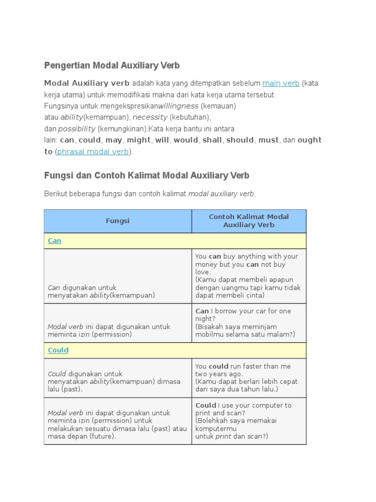 DOC) Pengertian, Fungsi dan Contoh Kalimat Modal Auxiliary Verb | Tika Astira - Academia.edu