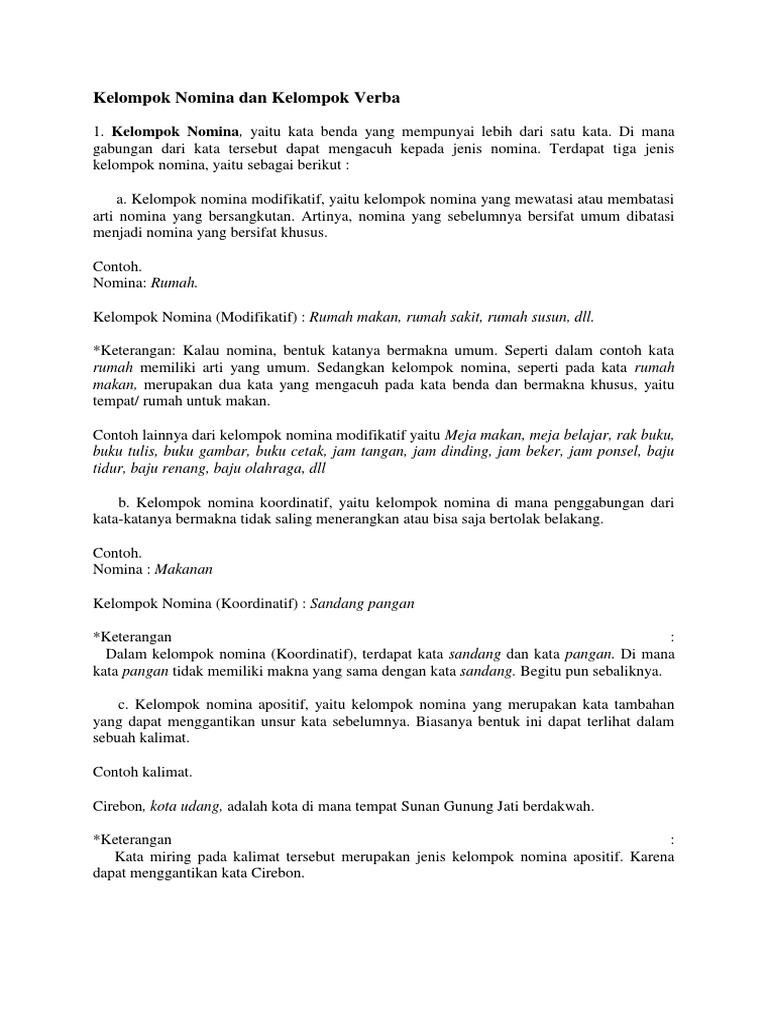 VERBA DAN NOMINA.docx - Pengertian dan contoh kelompok verba modifikaif koordinatif apositif Tanyakan detil pertanyaan Ikuti tidak puas sampaikan dari | Course Hero