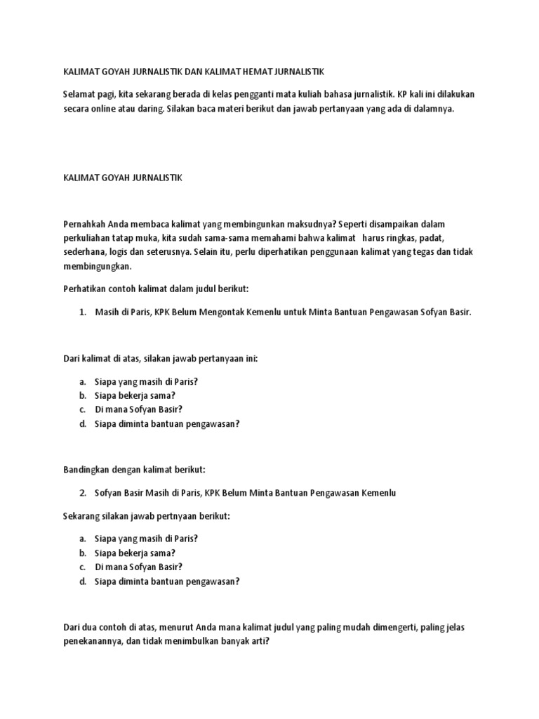 KALIMAT GOYAH JURNALISTIK DAN KALIMAT HEMAT JURNALISTIK