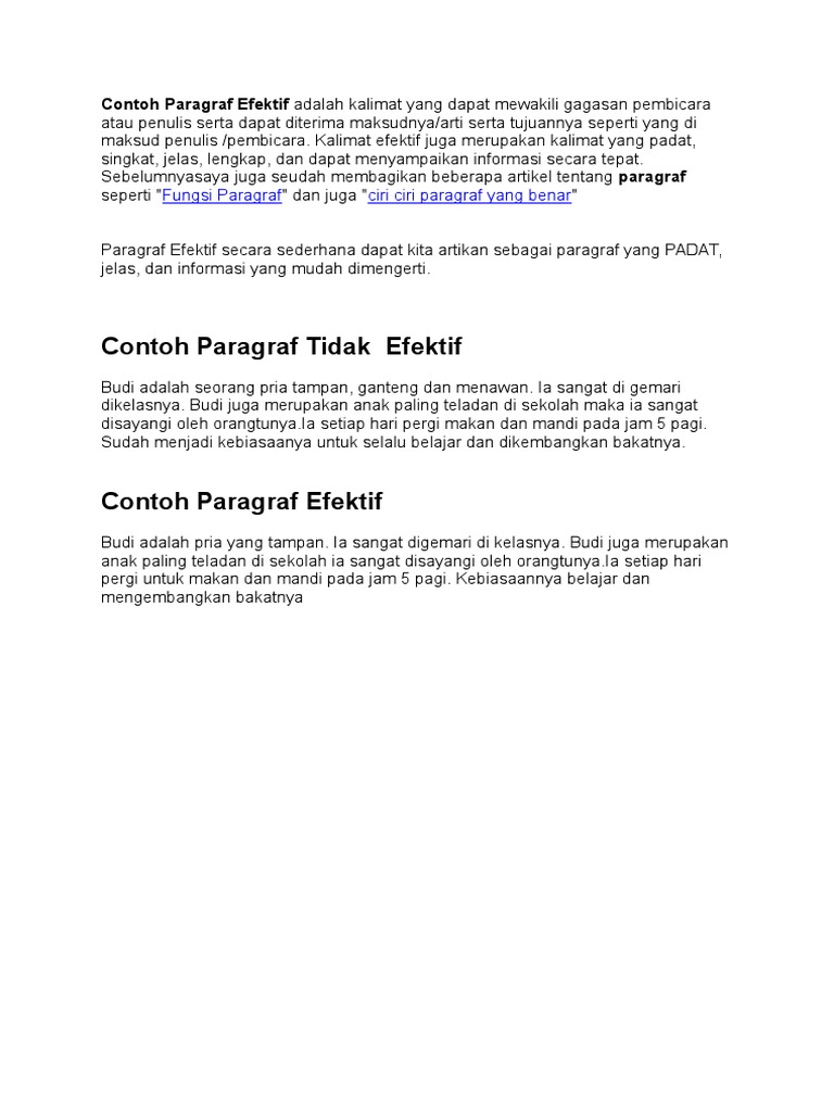 Contoh Paragraf Efektif Adalah Kalimat Yang Dapat Mewakili Gagasan Pembicara Atau Penulis Serta Dapat Diterima Maksudnya