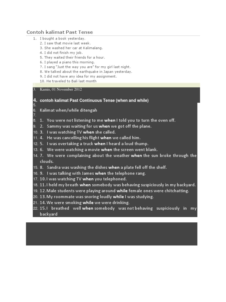 35 Contoh Kalimat Berbahasa Inggris Tentang Past Continuous Tense Dan Terjemahannya