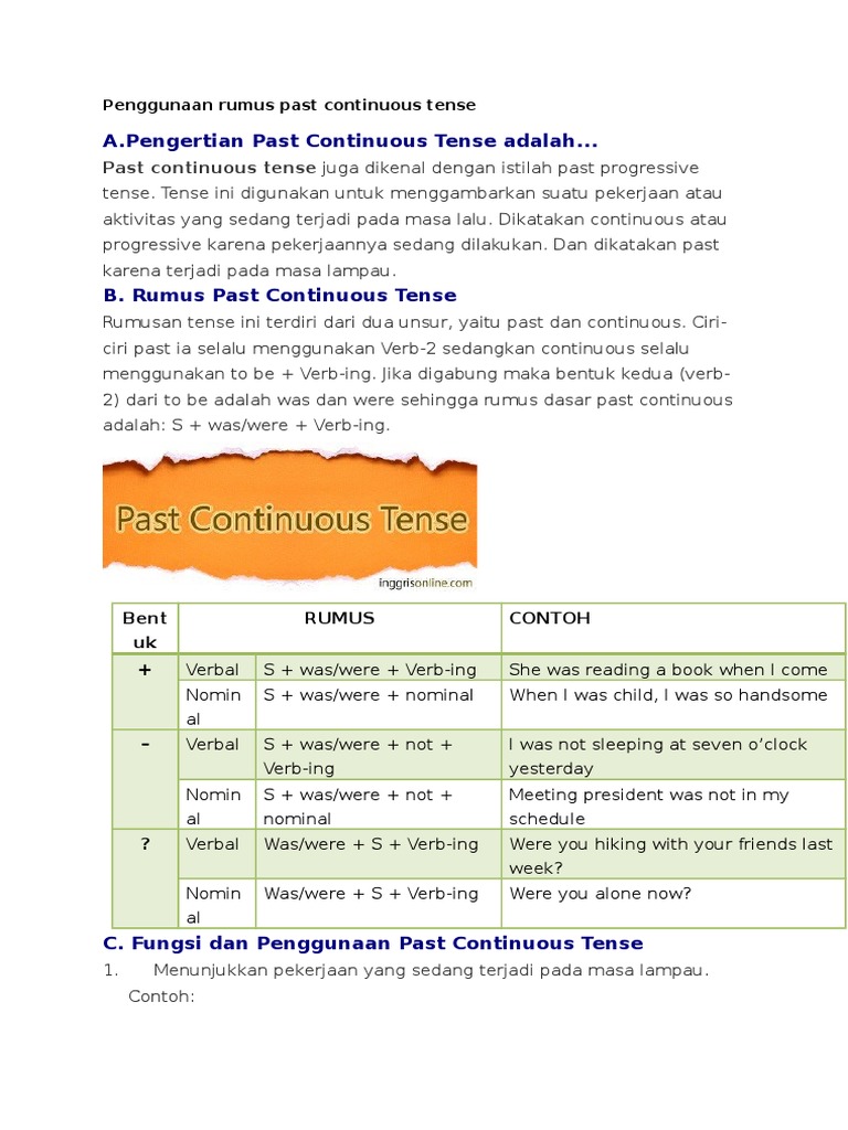 DOC) Fungsi dan Contoh Kalimat Past Continuous Tense20190805 8102 1wkjnro | vai virmansyah - Academia.edu
