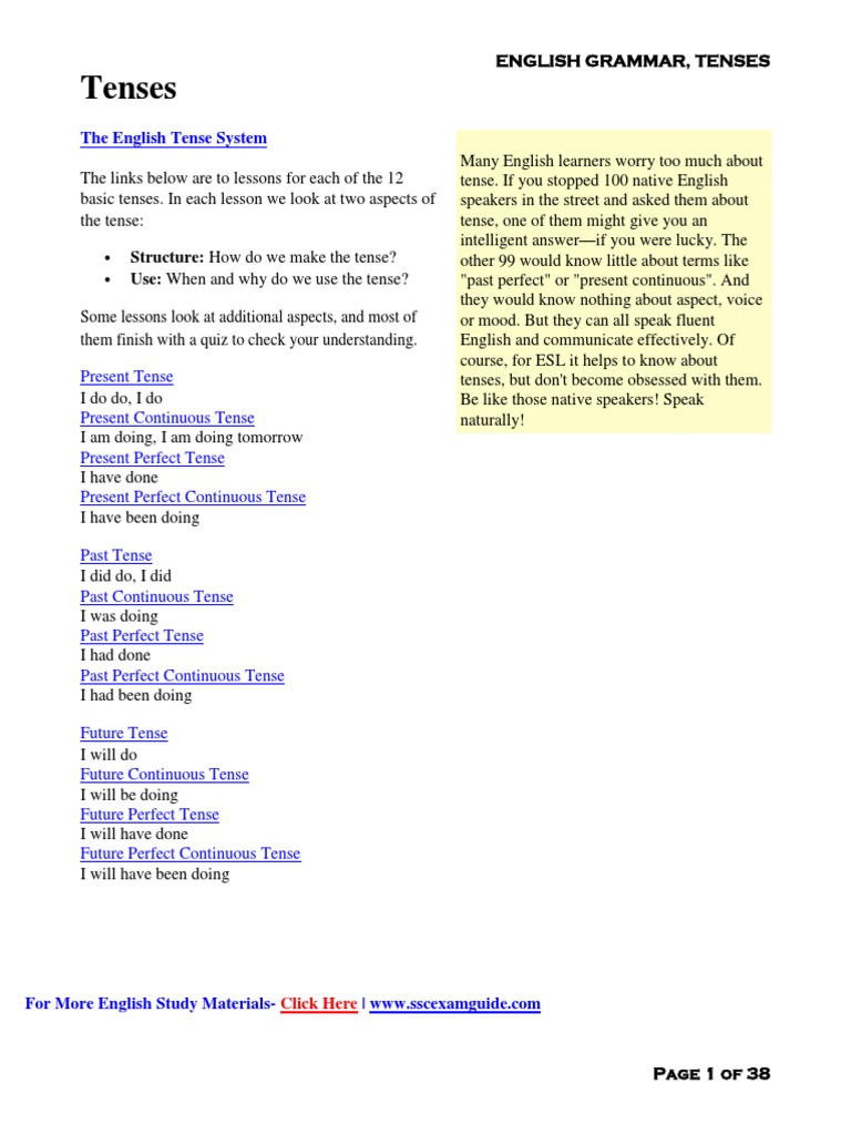 General English Grammar Tips- Tenses Download in PDF | Perfect (Grammar) | Grammatical Tense