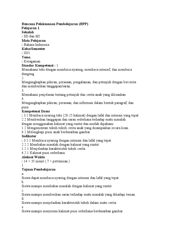 DOC) Rencana Pelaksanaan Pembelajaran Bahasa Indonesia Kelas 4 Materi Mendeskripsikan gambar dengan kalimat runtut dan Pentunjuk Penggunaan Alat dengan runtut | Yustinus Raditya Budi Satria - Academia.edu