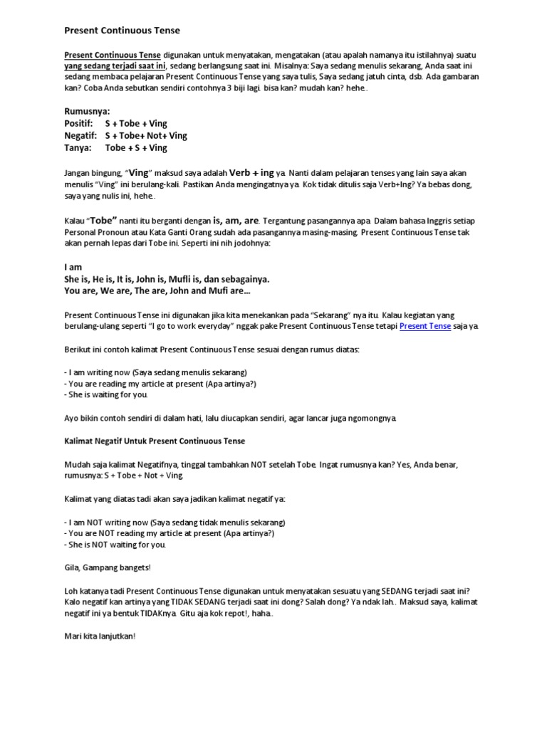 101 Contoh Kalimat Dalam Present Continuous Tense Positif, Negatif, dan Interogatif Beserta Artinya | SOAL UTBK SBMPTN 2021 DAN PEMBAHASAN [PDF]
