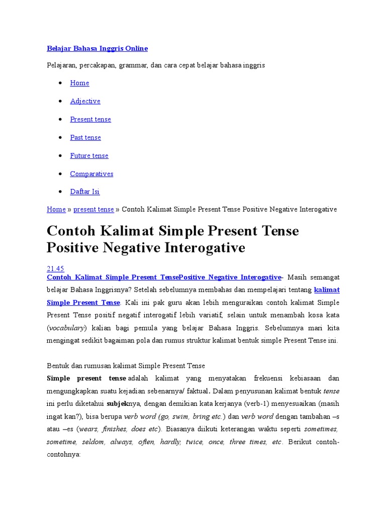 Contoh Kalimat Simple Present Tense Positif Negatif Interogatif