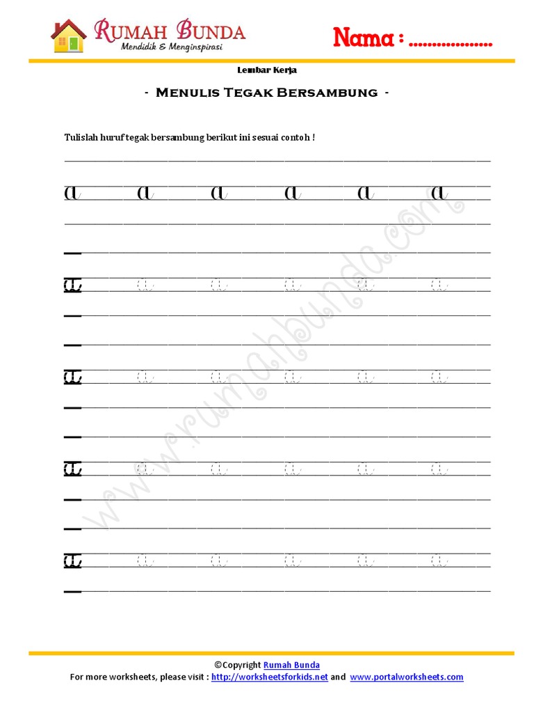 Worksheet Menulis Huruf Tegak Bersambung | Printable Worksheets and Activities for Teachers, Parents, Tutors and Homeschool Families