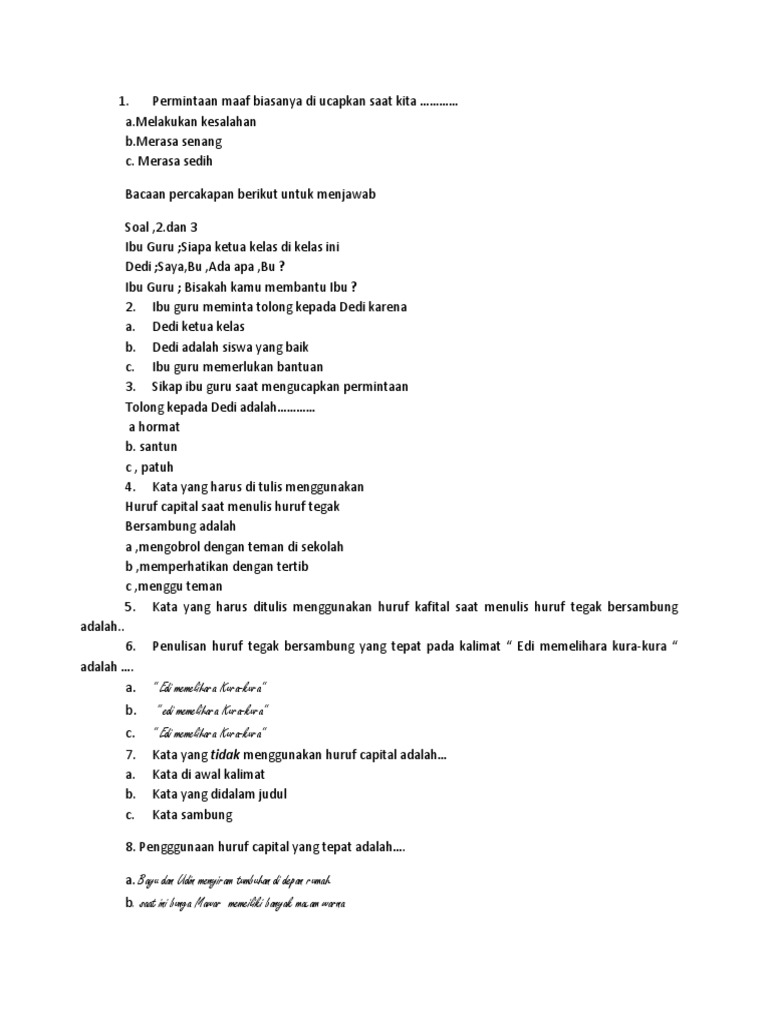 Buatlah 10 kalimat tanya dengan tulisan tegak bersambung. Huruf kapital - Brainly.co.id
