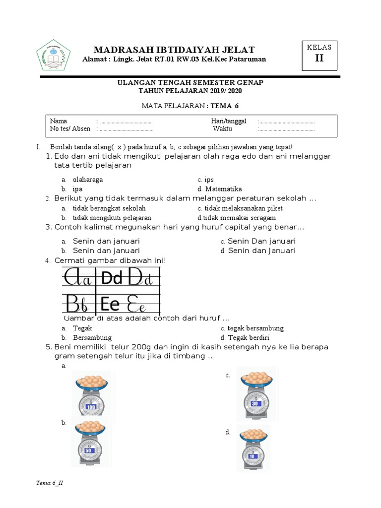 Lengkap - 30+ Contoh Soal UTS / PTS untuk kelas 2 SD/MI Tema 6 Sub 1 & 2 Kunci Jawaban - Bospedia
