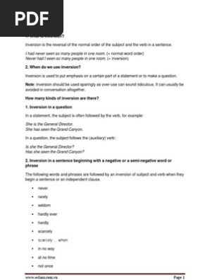 Inversion | Subject (Grammar) | Sentence (Linguistics)