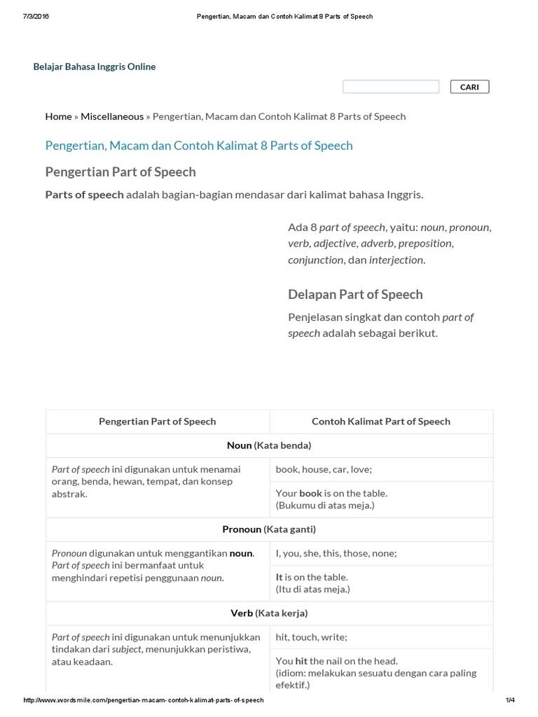 DOC) Pengertian Part of Speech | Rahma Wati - Academia.edu