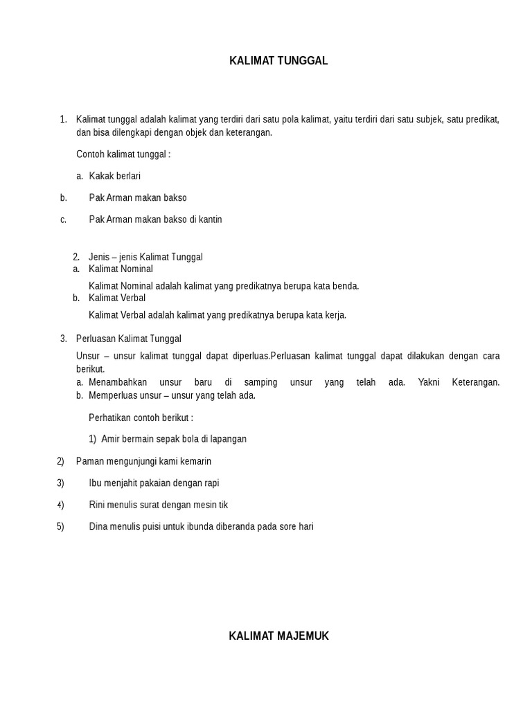 Contoh Kalimat Tunggal Dan Kalimat Majemuk