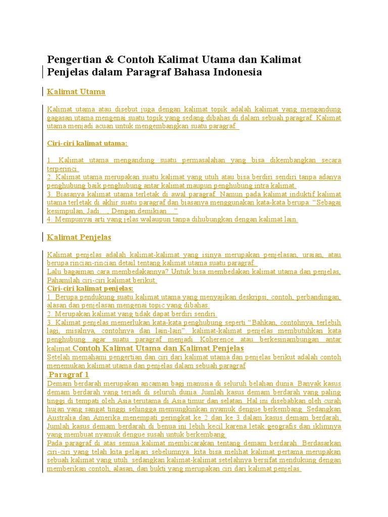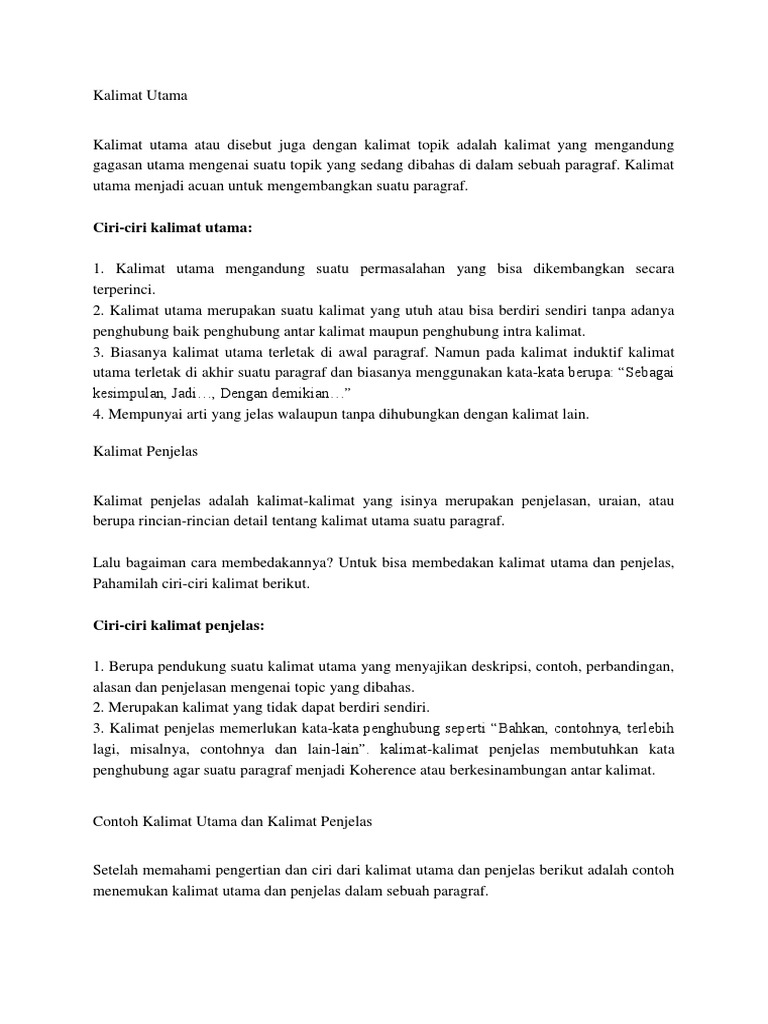 2 Contoh Kalimat Utama dan Penjelas Dalam Sebuah Paragraf