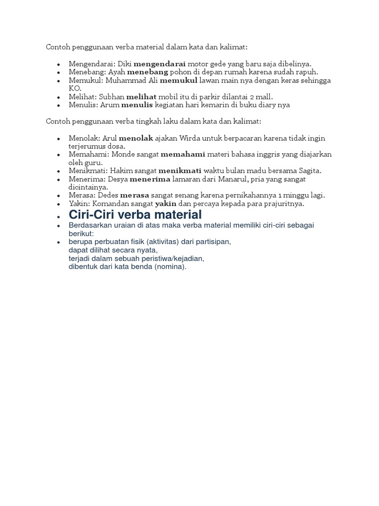 20 contoh verba material dan tingkah laku - Brainly.co.id