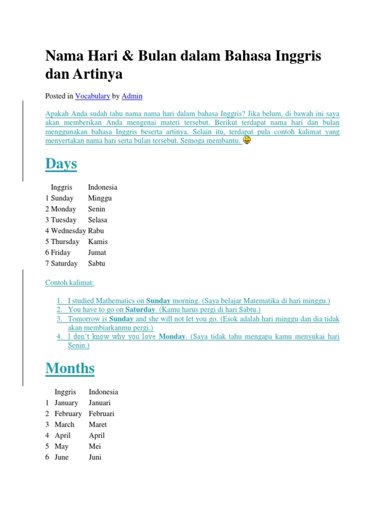 English Vocabulary: Days & Month (Hari dan Bulan) | Sederet.com