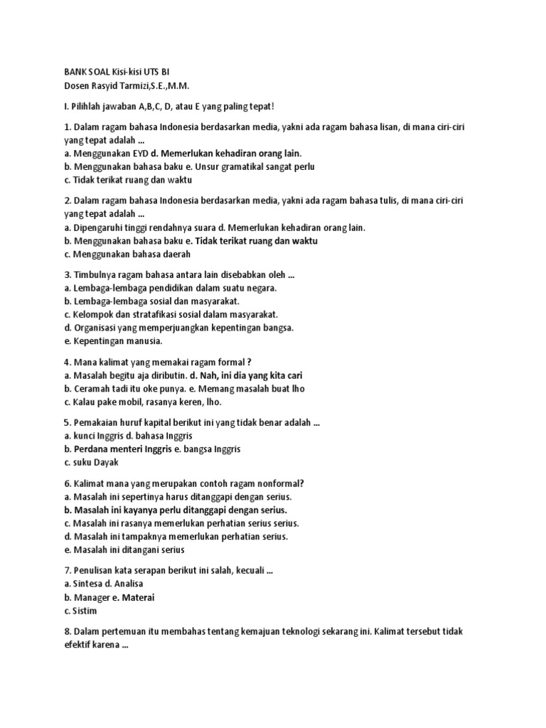Soal Soal Bahasa Indonesia