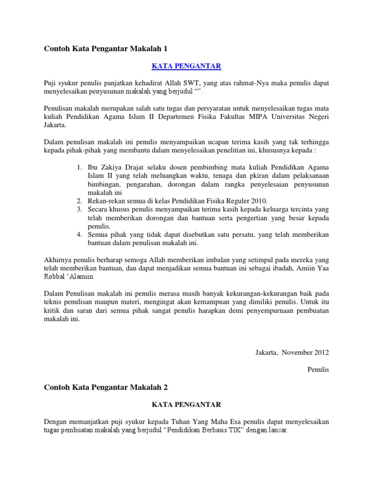 Contoh Kata Pengantar Makalah - Singkat, Pkn, Agama, Laporan