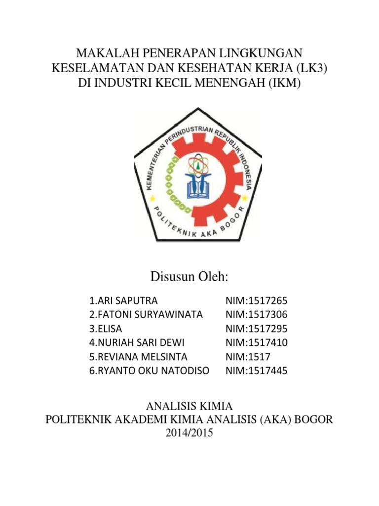 Makalah Penerapan Lingkungan Keselamatan Dan Kesehatan Kerja