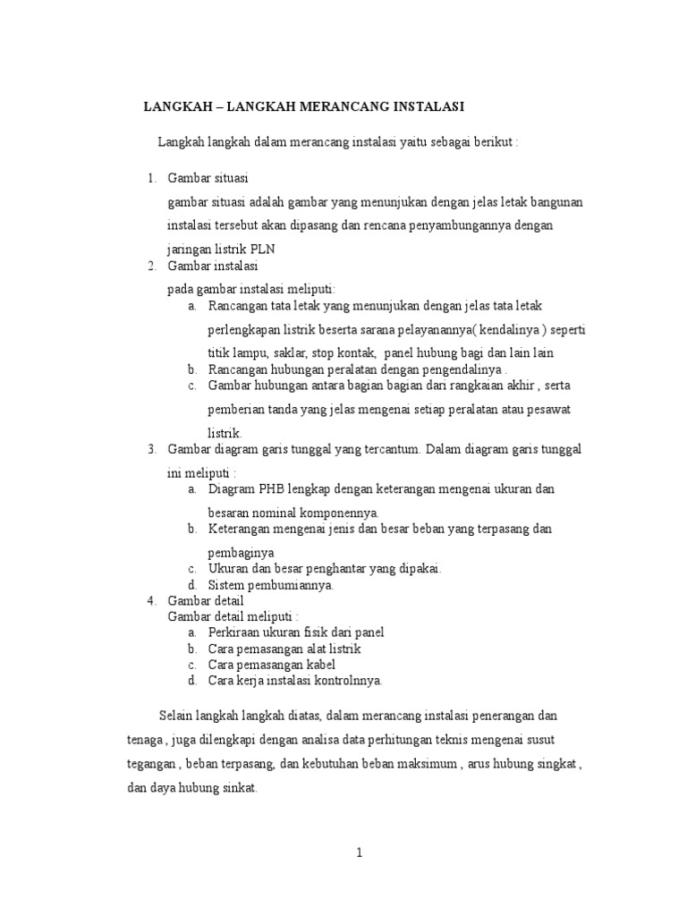 Makalah Perancangan Instalasi Listrik 1 Fasa