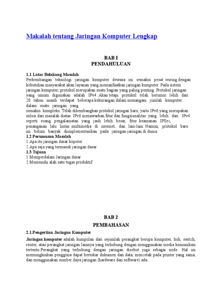 Contoh Makalah Jaringan Komputer dan Penjelasan ( Download file DOC )