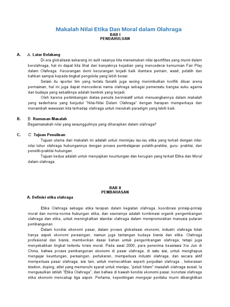 Makalah Nilai Etika Dan Moral Dalam Olahraga