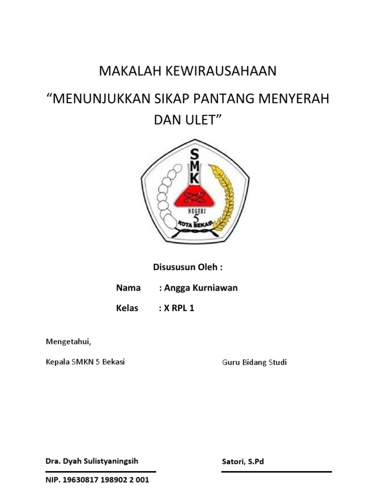 Contoh Cover Makalah Kewirausahaan | Kata Kata