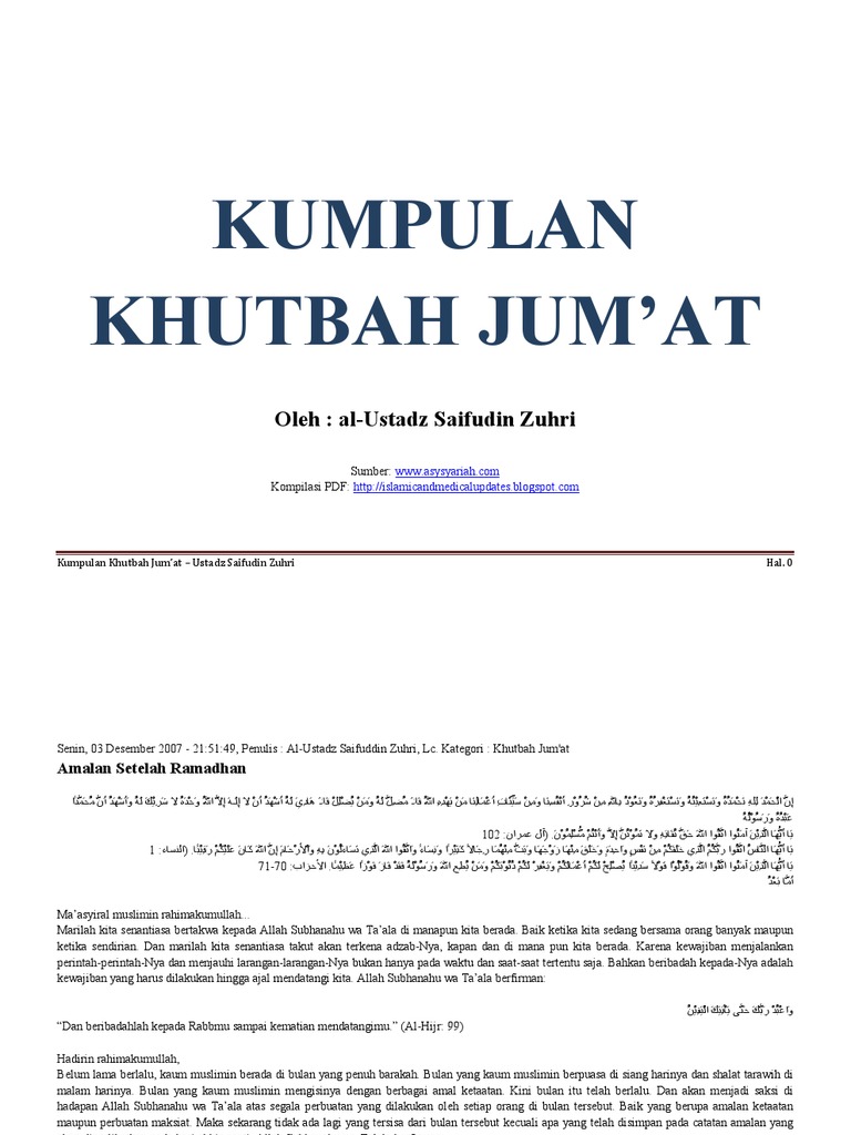 Kumpulan Khutbah Jum’at - Ustadz Saifuddin Zuhri