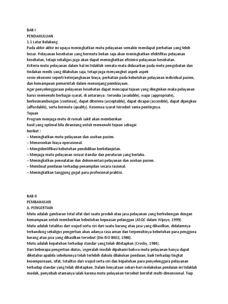 PDF) BAB I KONSEP DASAR MUTU PELAYANAN KESEHATAN | bagoes anggoro - Academia.edu