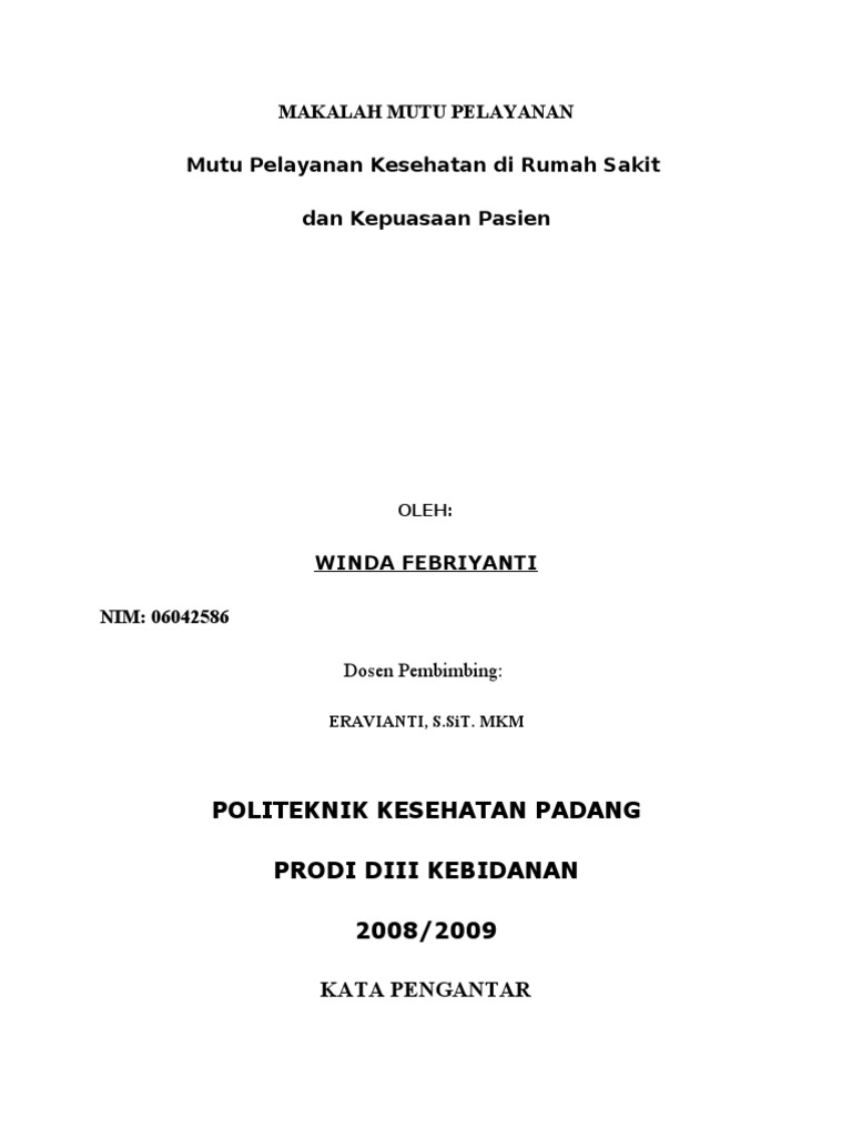 DOC) Penilaian Mutu Pelayanan Kebidanan.docx | Linda Yusanti - Academia.edu