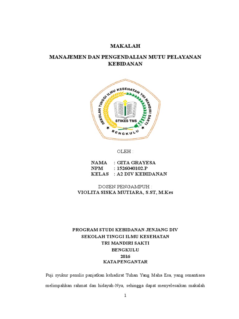 DOC) MAKALAH Manajemen Mutu Pelayanan Kebidanan | Hilda Aswar - Academia.edu