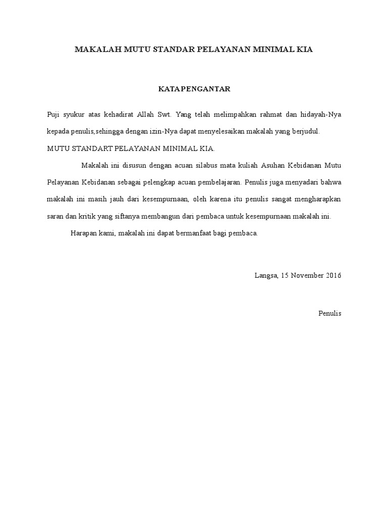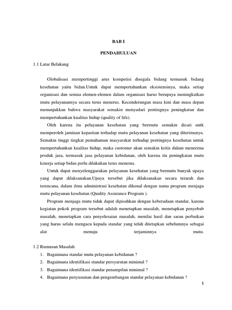 Makalah Mutu Pelayanan Kebidanan Standar Persyaratan Minimal Dan Penampilan Minimal