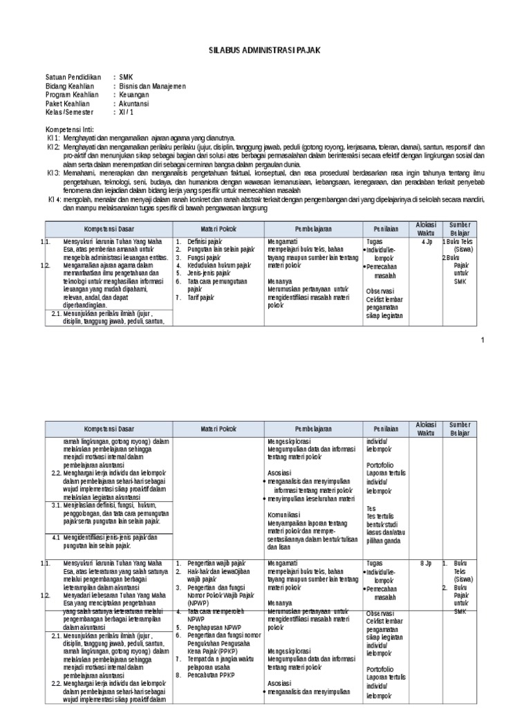 Rpp Administrasi Pajak Smk Kelas Xi Kurikulum 2013 - Guru Ilmu Sosial