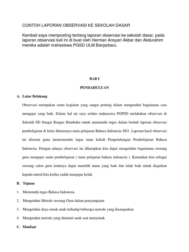 DOC) CONTOH LAPORAN OBSERVASI JADI BAB 1 PENDAHULUAN | Renaldo Oktoberi - Academia.edu