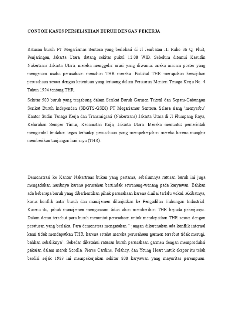 Contoh Kasus Perselisihan Buruh Dengan Pekerja