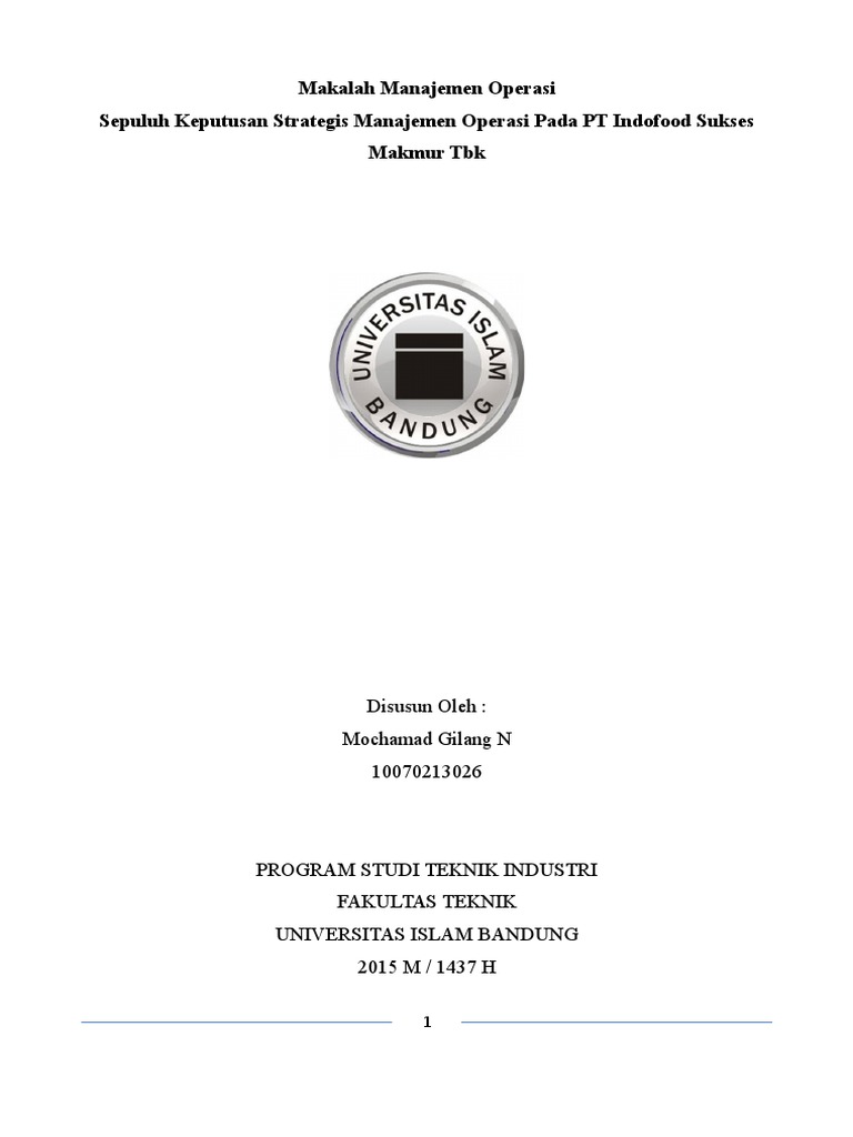 Makalah - BAB I PENDAHULUAN 1.1 Latar Belakang PT Indofood Sukses Makmur Tbk merupakan salah satu perusahaan mie instant dan makanan olahan terkemuka di | Course Hero