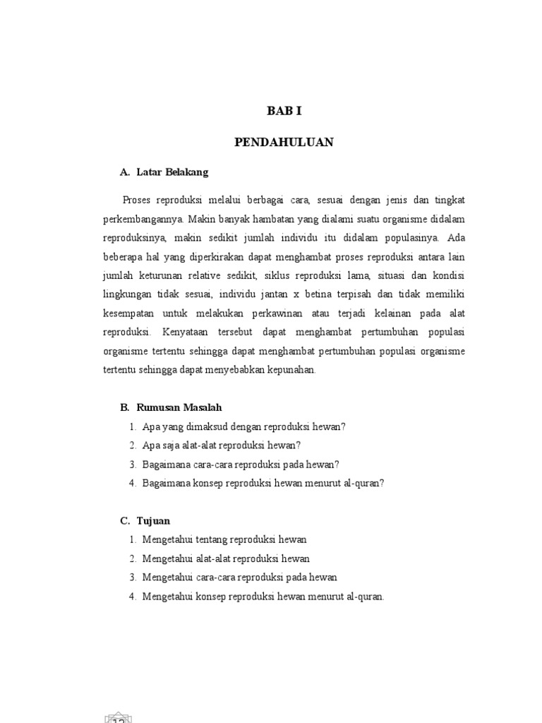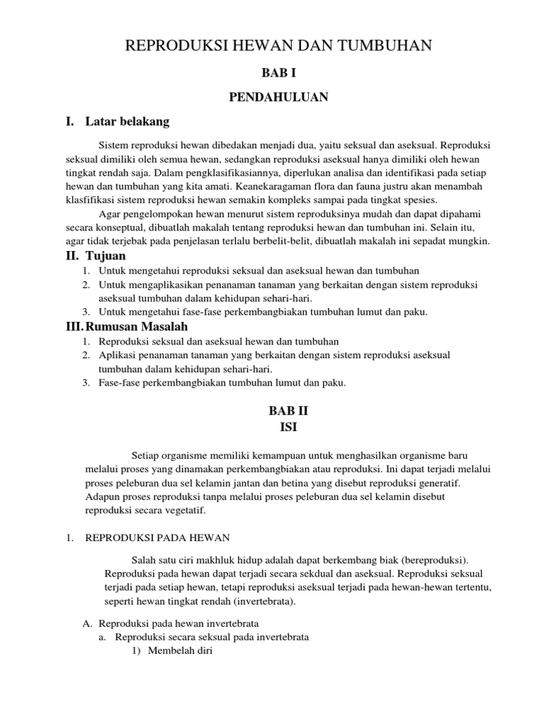 biologi makalah reproduksi (NEW) (1) - BAB I PENDAHULUAN A Latar Belakang Sistem reproduksi adalah suatu rangkaian dan interaksi organ dan zat dalam | Course Hero