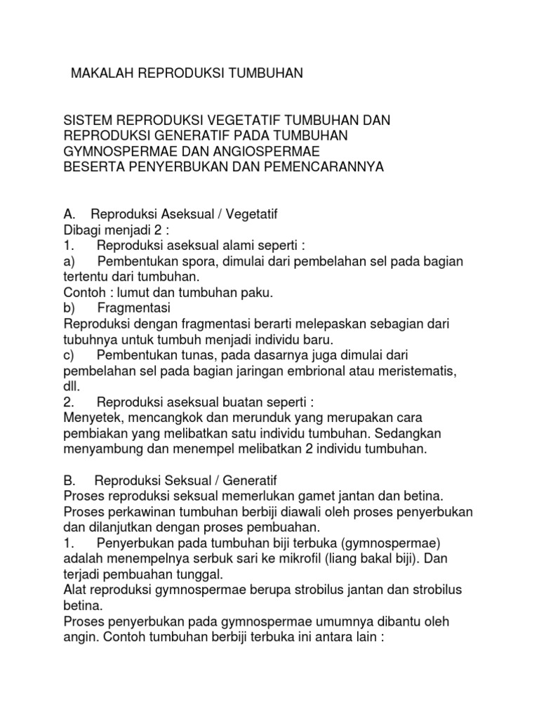 DOC) Perkembangbiakan Tumbuhan Secara generatif | ayomi pangestika - Academia.edu