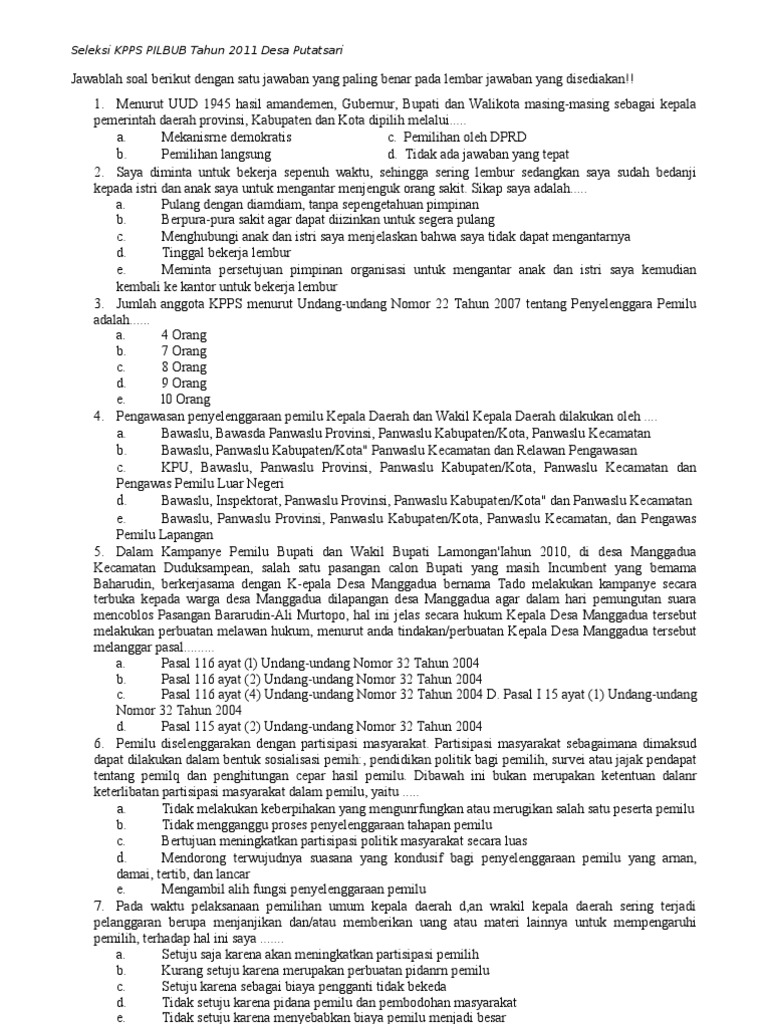 Contoh Soal Tes Kesehatan Jiwa Bagi Calon Bawaslu, KPU, DPR dan Polri | Catatan Harian Abu Raksa