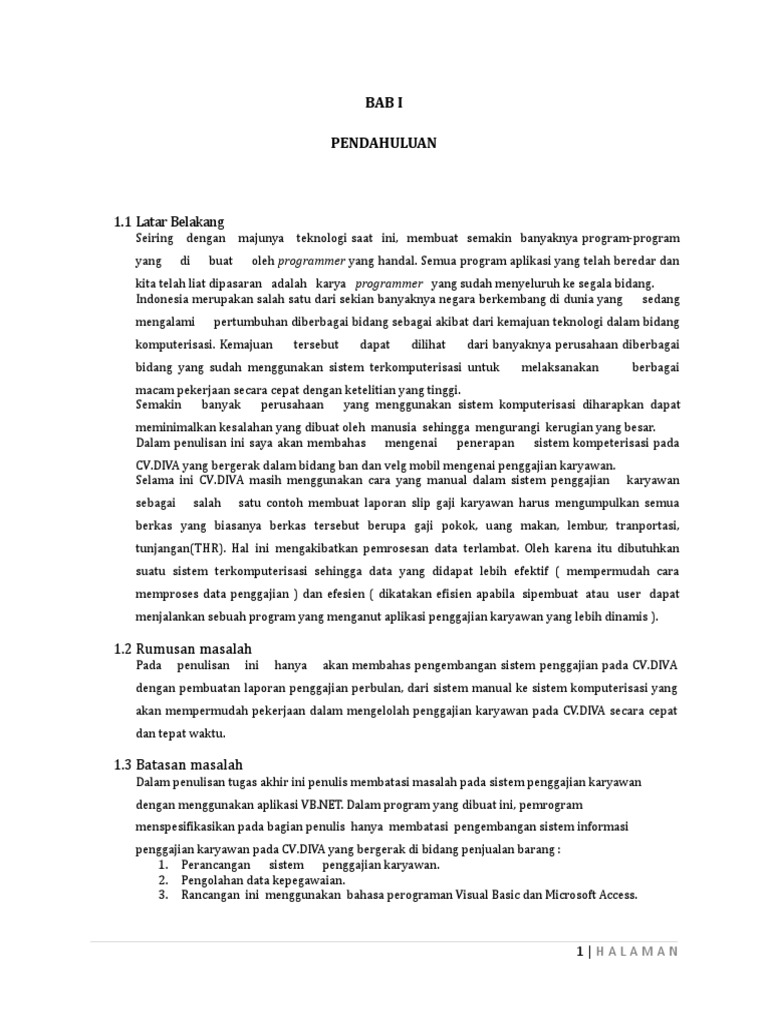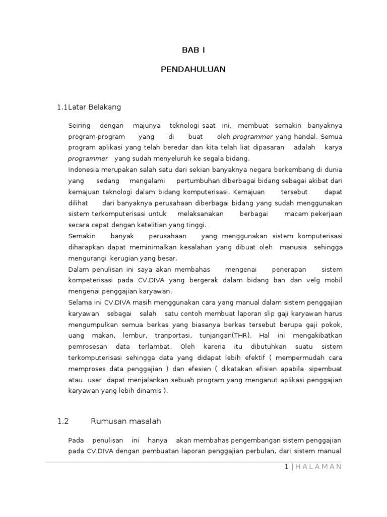 Contoh Laporan Pkl Sistem Penggajian Karyawan - Kumpulan Contoh Laporan