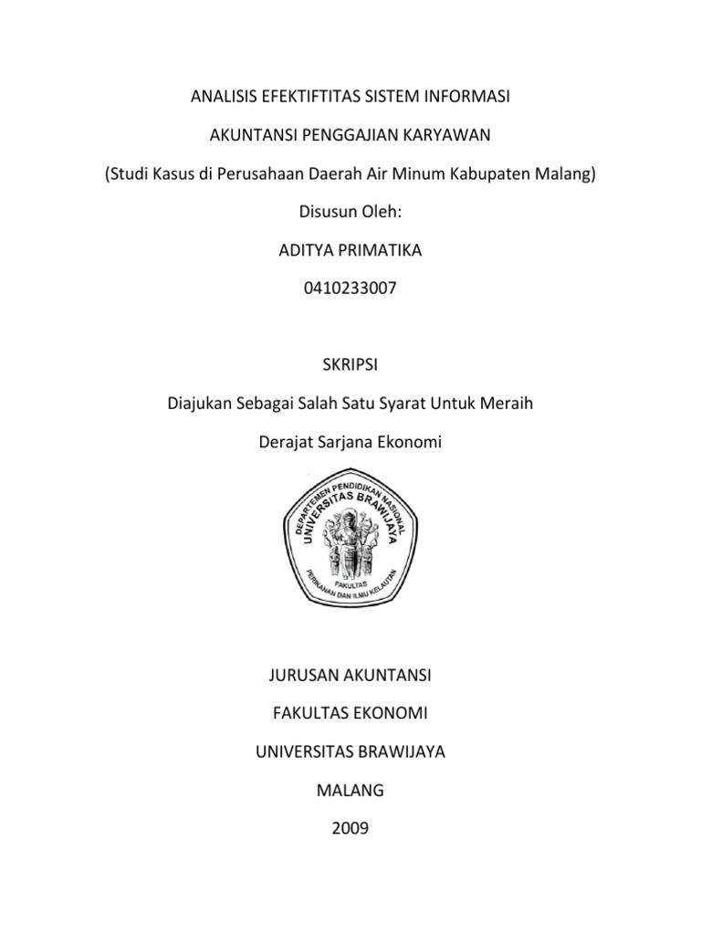 Analisis Efektiftitas Sistem Informasi Akuntansi Penggajian Karyawan Studi Kasus Di Perusahaan Daerah Air Minum Kabupaten Malang