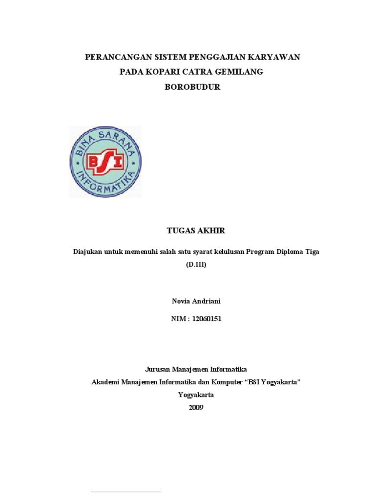 SISTEM PENGGAJIAN KARYAWAN PADA PT. PERSADA (KOPINDOSAT) YOGYAKARTA TUGAS AKHIR