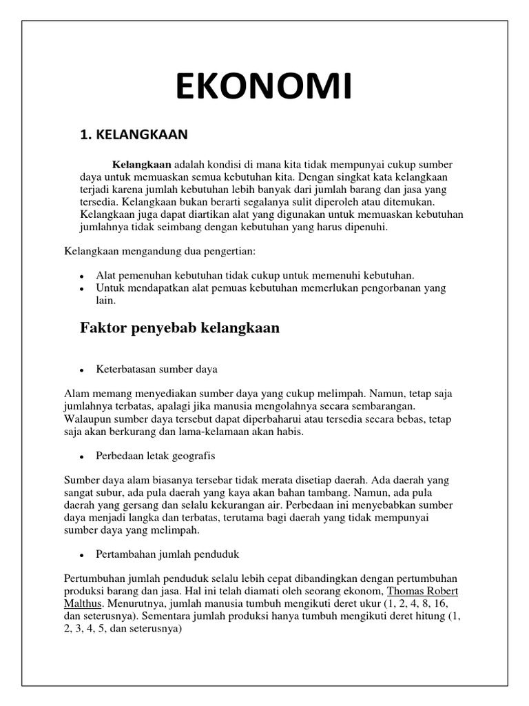Makalah Ekonomi (Kelangkaan, Masalah Ekonomi,Etc)