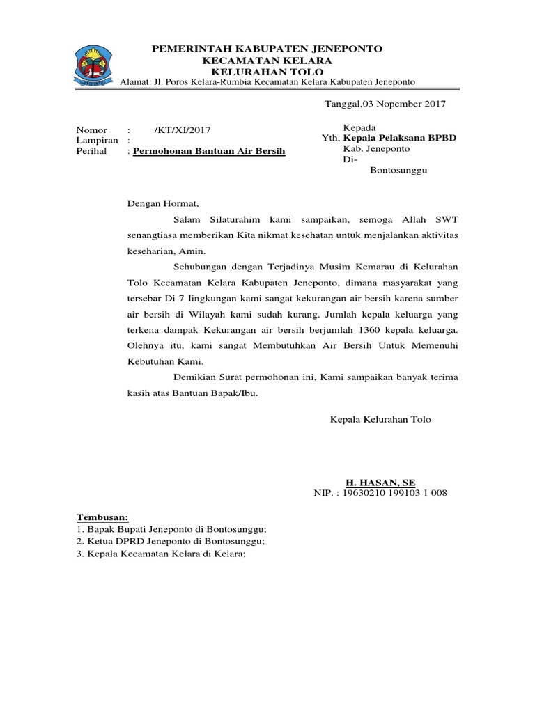 Contoh Surat Permohonan Bantuan Air Bersih Ke Perusahaan - Bagi Contoh Surat