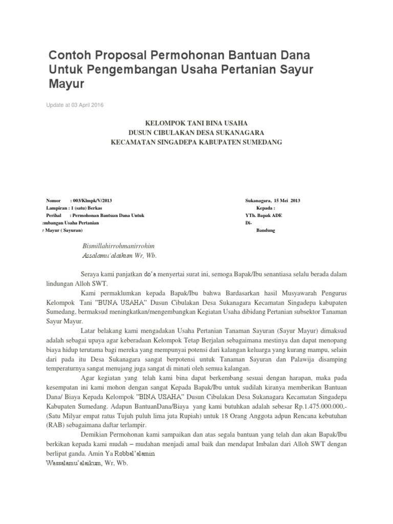 Contoh Proposal Bantuan Bibit Pertanian Contoh Miri – Cute766