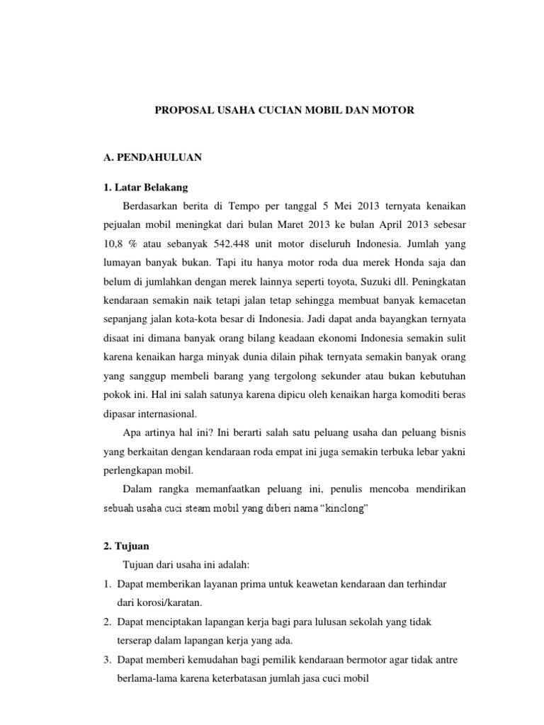 Contoh Proposal Usaha Cuci Mobil Dan Motor