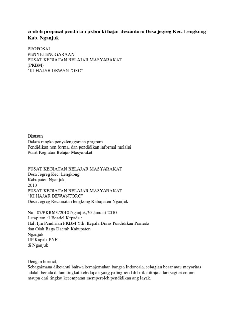 Contoh Proposal Pendirian Pkbm Ki Hajar Dewantoro Desa Jegreg Kec