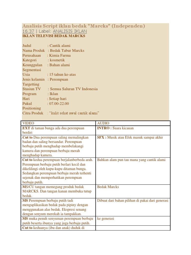Analisis Script Iklan Bedak