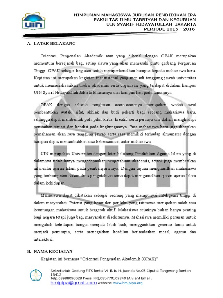PDF) PROPOSAL ORIENTASI STUDI DAN PENGENALAN KAMPUS (OSPEK) KE-II | Miftachur Rohman - Academia.edu