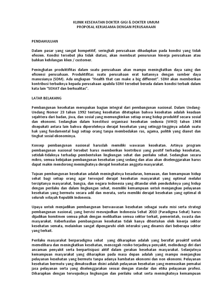 Contoh Proposal Penawaran Kerjasama Klinik Dengan Perusahaan - Berbagi Contoh Proposal