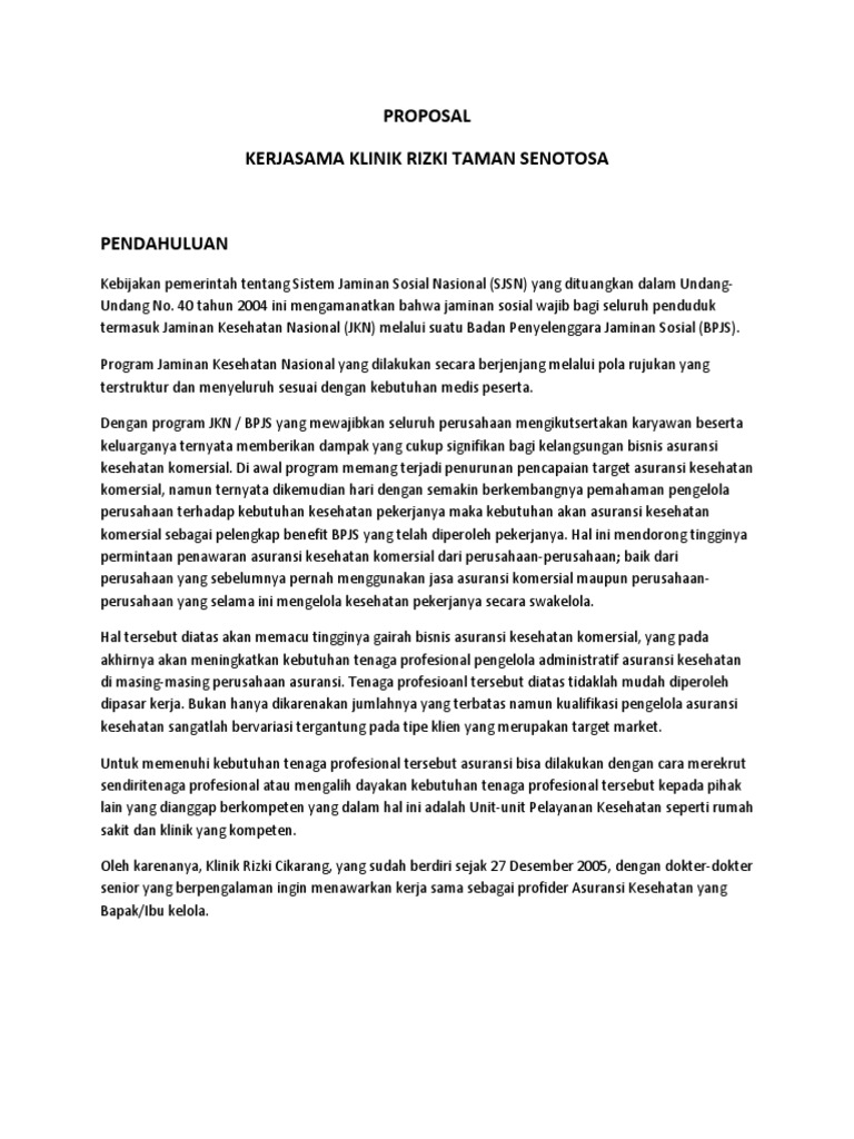 Contoh Proposal Kerjasama Klinik Kesehatan - [DOCX Document]